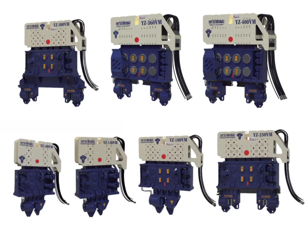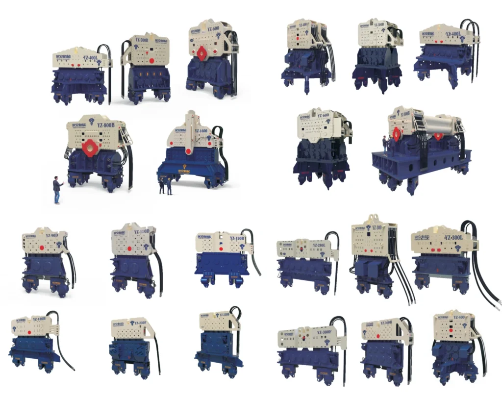 YZ series normal frequency hydraulic vibratory hammers are “workhorse” of vibration technology. Their robust yet simple design enables these units to be used for driving and extracting sheet piles, tubes.